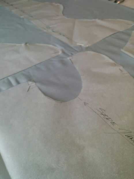 Después de todas las rectas se cortan, se obtiene un punto de partida para obtener las tijeras debajo de las 2 capas de tela.