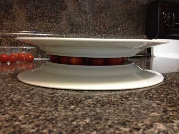 Se suman la placa restante en la parte superior y derecha. Alinee las dos placas junto con los tomates en el centro.