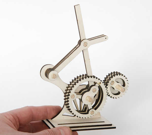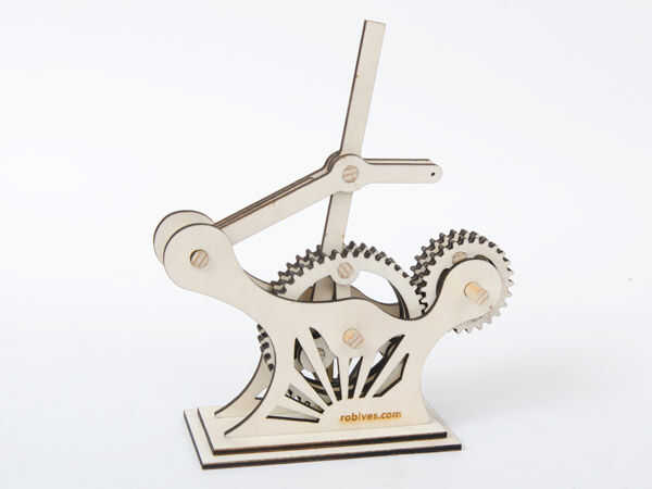 Ajuste el varillaje y el engranaje grande seguido por el pequeño engranaje dentro de los orificios en la pieza lateral.
