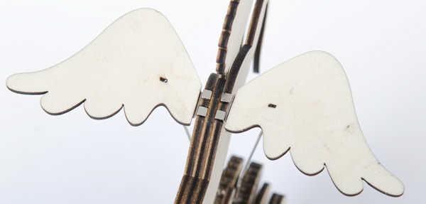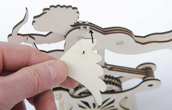 Enganche el otro extremo de la varilla de empuje del ala en los lazos de las alas.