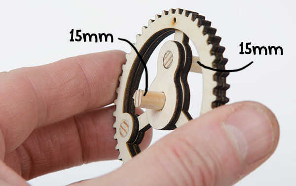 Colocar el interior de engranajes en su lugar con un pasador de 15mm a ambos lados como se muestra.