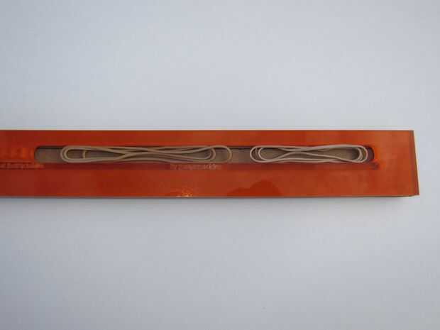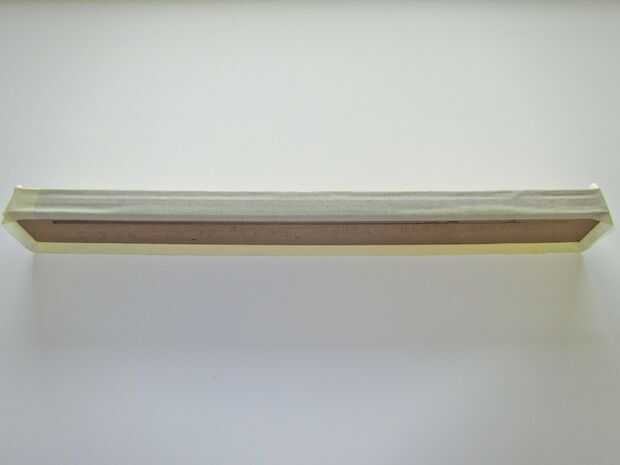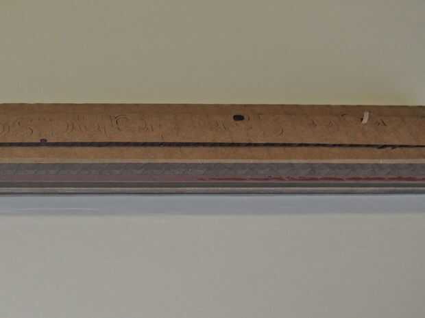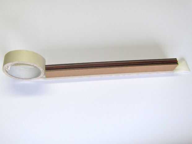 La tapa se coloca en la parte superior y sujetando todo firmemente juntos se coloca en la cinta, en el centro. Como se muestra, la cinta es correr alrededor de los bordes con alguna cinta que se pega hacia fuera y dobla en ambos lados. Como se explicó antes, tuve que añadir alguna cinta para mantener la tapa cerrada.
