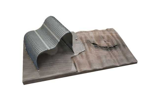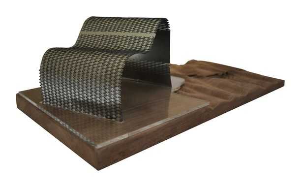 Esta pieza de metal flexible se creó utilizando un dibujo 2D. La técnica utilizada se llama ranurado, se refieren al estudio de Aaron Porterfield de patrones diferentes de ranurado.