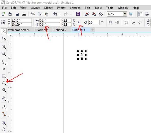 - A continuación, seleccione el círculo, haga clic en el icono de bloqueo y cambiar la dimensión de . 30".