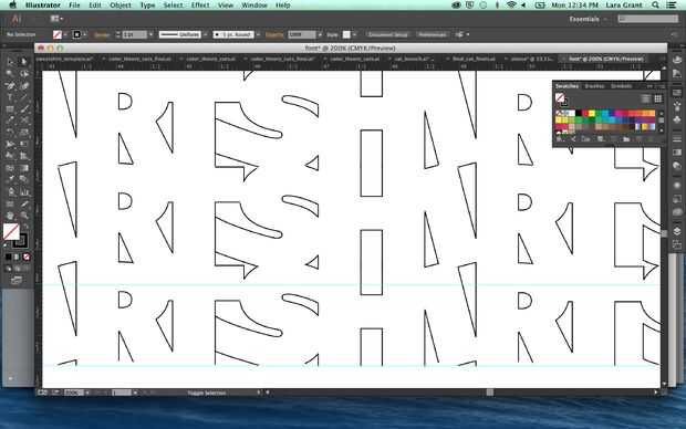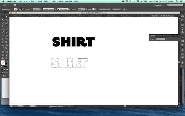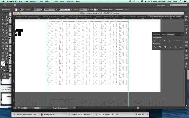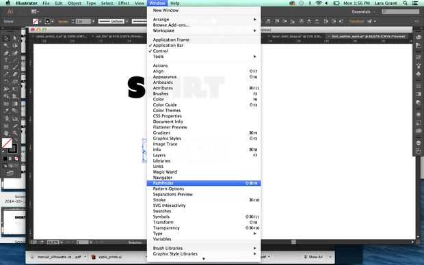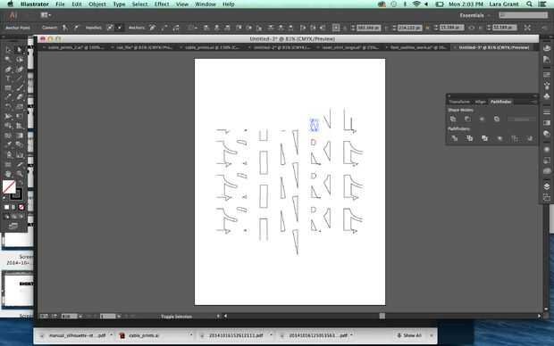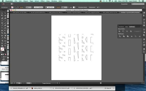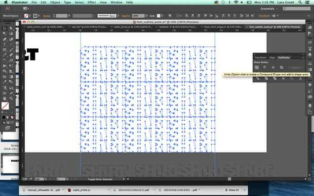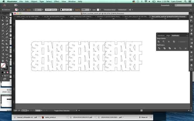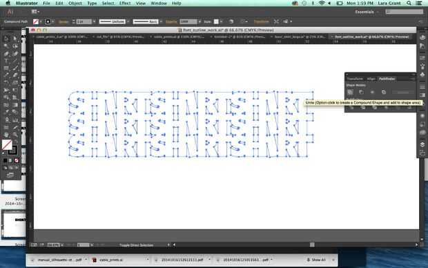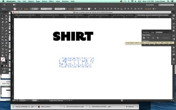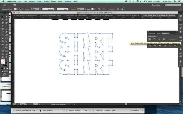 - Seleccionar todas las letras, pulse el botón de Únete bajo Modos de forma en la ventana de Pathfinder . Debe tener el contorno del texto!