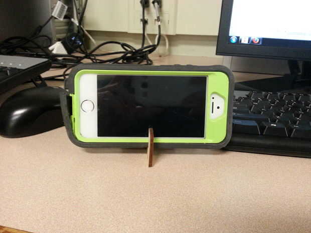 Se trata de un soporte de madera teléfono hecho con madera de 1/8 de pulgada, utilizando la vida técnica para hacer madera flexible de la bisagra. Es ideal para ver películas o espectáculos o vídeos en la orientación del paisaje, pero no puede apoyar