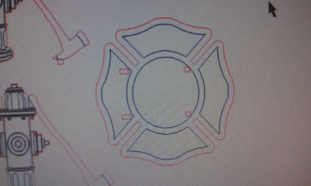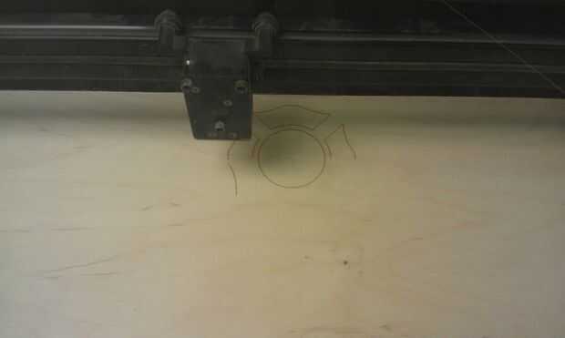 Esta versión especial se cortó con un (láser). Las líneas rojas son los cortes donde sólo están grabadas las líneas negras. Con este láser en particular: