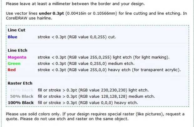 Si vas por las directrices de CutYourWay.com, verás que todas las líneas 100% azul valor RGB y menos de .3pt cortará a través de un material dado. El mapeo de color es muy específico y para su comodidad, puede descargar la paleta CYW fuera de su sitio Web.