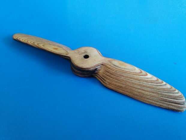 En este instructable yo te llevará al proceso de producción de eso; una hélice de madera de 5 x 4 pulgadas. La hélice se hace por láser cortar varias capas de aircraftplywood fino y pegar ellos juntos. Se trata de un propulsor de trabajo, en el video se puede ver encendido un avión RC!