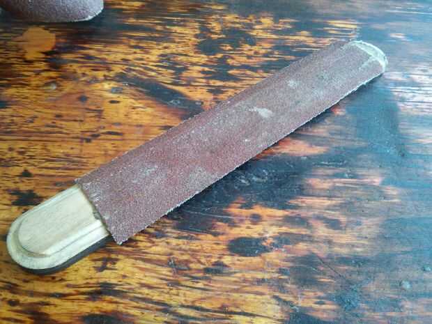 Para el lado convexo de la hélice puede ser útil para pegar un trozo de papel de lija en un pedazo de madera y de esa manera la arena.