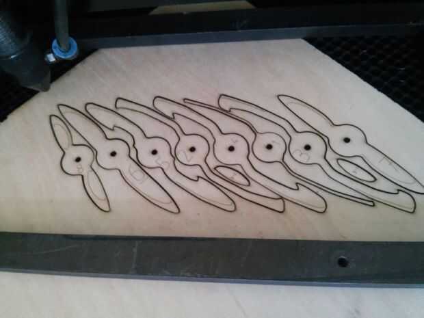 Si utilizas tu propia anidación, te recomiendo hacer la marca líneas en primer lugar, después de que los agujeros y como último el contorno de las láminas del propulsor. De esa manera el láser siempre estará en foco.
