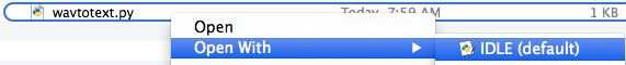 -Editar el archivo wavtotxt.py en la carpeta de LaserCutRecord: en Mac Ctrl + click y abrir con > IDLE, Adobe Edge código o TextEdit. En Windows, haga clic derecho y abrir con > IDLE o Bloc de notas.