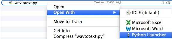 -En la carpeta LaserCutRecord, Ctrl + haga clic en wavtotxt.py y abrir con... Lanzador de Python.