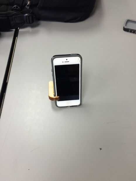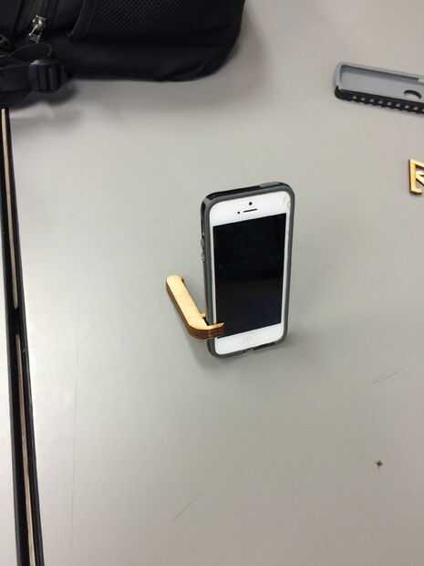 Se trata de un soporte de madera teléfono hecho con madera de 1/8 de pulgada, utilizando la vida técnica para hacer madera flexible de la bisagra. Es ideal para ver películas o espectáculos o vídeos en la orientación del paisaje, pero no puede apoyar