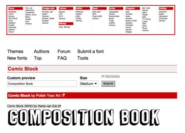 Ir a www.dafont.com. Aquí puedes buscar fuentes por temas para encontrar cualquier cosa que usted puede pensar. Si escribe el texto en el cuadro de "Vista previa personalizada", podrá ver cómo el texto se verá en cada fuente.
