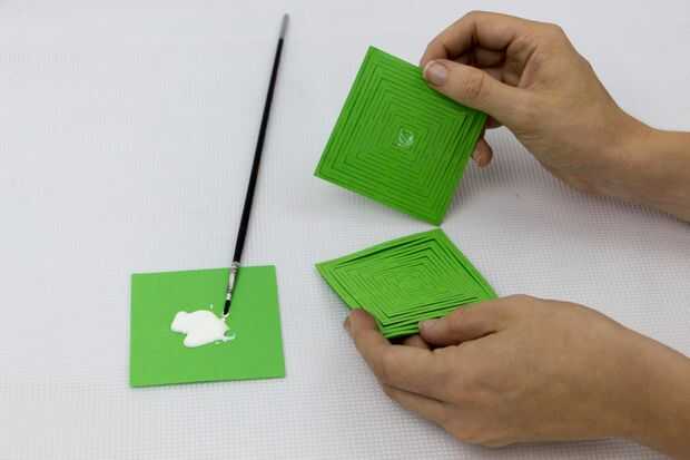 Uno tiene sus formas pegadas juntos en pares, puede empezar a pegar los pares juntos para formar el streamer.