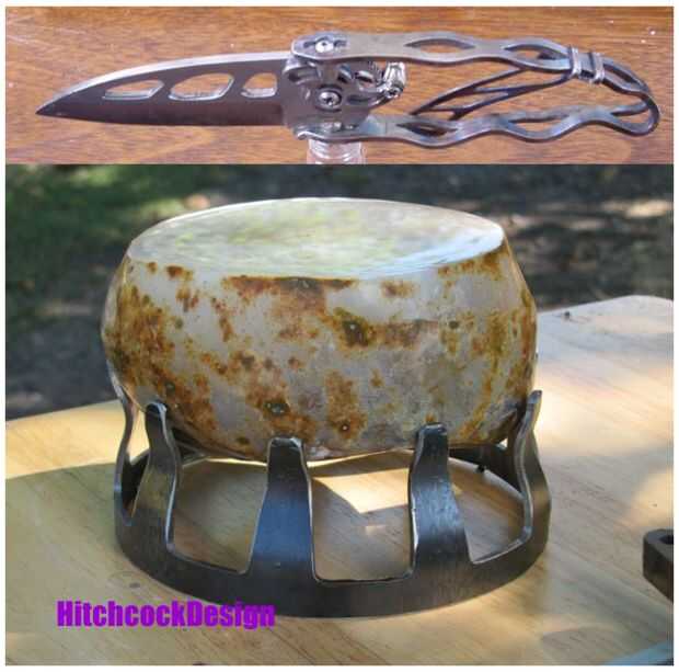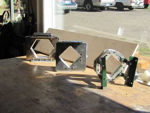 Se muestra el cuchillo Tribanda que acero ATS 34 hoja y marco de titianium y clip, todo láser cortan partes, debajo de él es una piedra en un láser de corte parte originalmente diseñado como una pieza de bajo torque. La segunda imagen es de un conjunto de matrices para la r Multiwrappeuna máquina de que desarrollo para Strawjet. Son corte de placa de aluminio de 1/2".