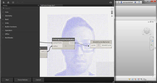 Una vez que estés feliz con tu imagen, conectar el nodo de "Círculo" al nodo "Curva de modelo" y haga clic en "Ejecutar". Puede tomar algunos minutos para que tu imagen aparezca en Revit.