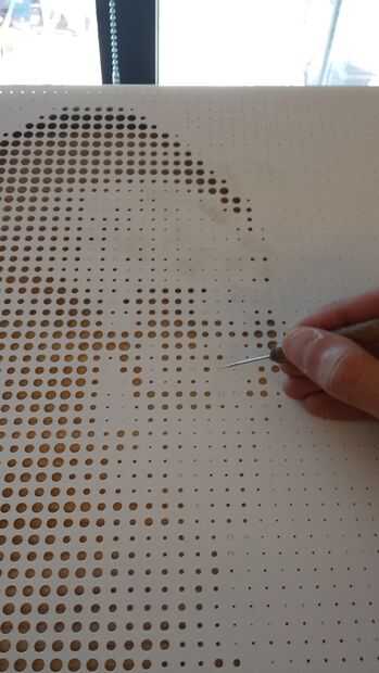Dependiendo del tamaño de tus círculos, la pieza cortada puede necesitar algunos limpiar (aquí estoy asomando mis ojos hacia fuera con una herramienta de arcilla).