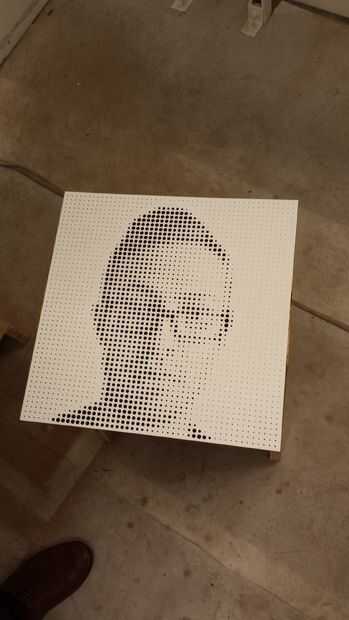 Utilizando illustrator o su software de vectores de elección, dibuje un cuadrado alrededor de su imagen para hacer un marco. Corté mi selfie de hoja de estireno blanco de 1/16". Cortan la misma frontera cuadrada de 1/8" negro acrílico para tener un soporte oscuro.