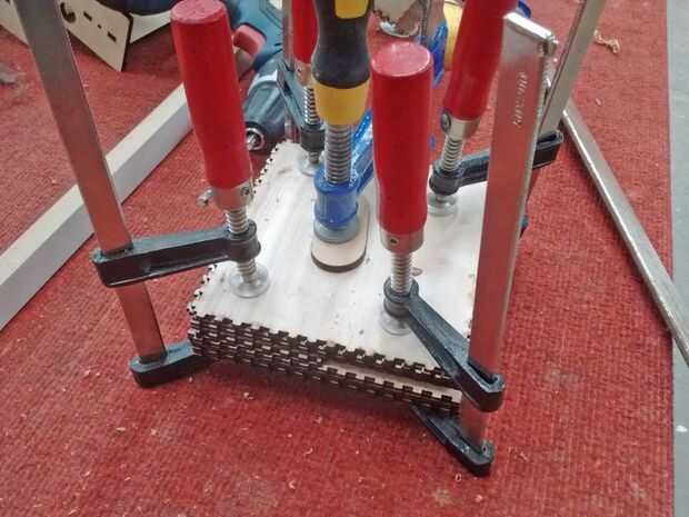 Después de cortar el material, utilicé algunas abrazaderas y juntamos todo por unos días, para que sea tan plano como sea posible.