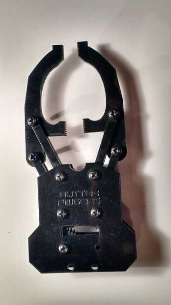 OK para empezar, si usaste algo más grueso o más fino que 1/8" material, el tamaño de tornillo será diferente. He utilizado 5 (1" 6 tornillos) , así como 4 (3/4" tornillos No.6) y 9 (6 tuercas de acero inoxidable). Un taladro inalámbrico hace maravillas para ayudar a esta parte. Sugiero acodar las piezas atornillado en la última cara. Tener paciencia y disfrutar de su garra! Usted puede incluso utilizar un servo para motorizarlo!