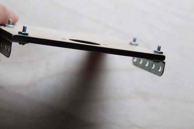 Este es el mismo procedimiento que el paso 6, sin embargo para la rearstock. A diferencia del paso 6, la orientación de la materia rearstock, que va a afectar el posterior montaje de la Arduino. En el rearstock, debería ver cuatro pequeños agujeros, con dos de ellos están más cerca que los demás. Con la pieza con los agujeros juntos más cerca a su izquierda, Monte los soportes del lado mirando hacia fuera, como se muestra en las fotos.