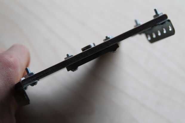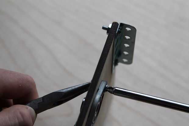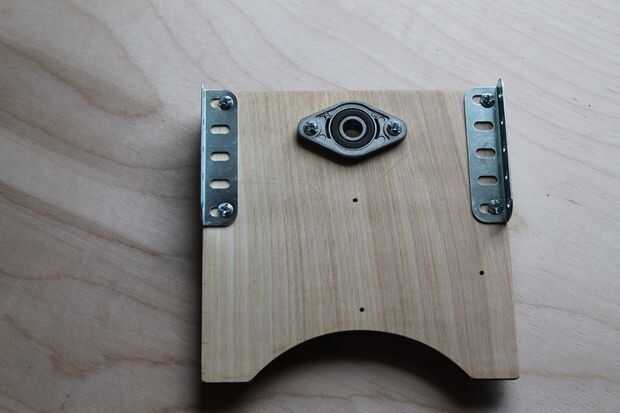 Coloque el cojinete en el orificio creado para él en el rearstock, con los agujeros de tornillo en el mismo lado que los soportes y asegúrelo con dos #6-32 tornillos con tuercas a juego.