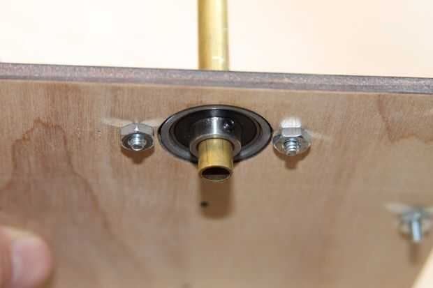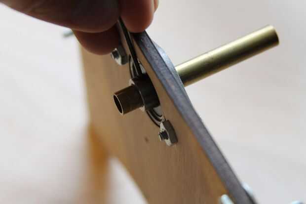Con una llave compatible con alumbre, atornille los tornillos de fijación en la pieza de 7 cm de tubo de latón, como se muestra.