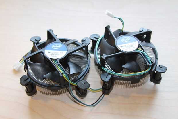 Si usted desea ir exagerada, como lo hice, puede implementar una solución de refrigeración. Sobre todo en parcelas más, los motores paso a paso pueden calentarse bastante. Aunque esto no debe afectar el rendimiento del dispositivo en modo alguno, puede ser bastante desagradable al tacto los motores mientras están calientes, ya que pueden conseguir lo suficientemente calientes como para quemar, y puedo dar fe a tales. Entre estos dos valores refrigeradores de CPU de Intel. Son muy baratos y pueden ser de origen aquí. Además, usted también necesitará una Dremel o similar herramienta rotatoria con un poco de corte, adicional 5 #6-32 tornillos con juego de tuercas por lo menos 3.75 cm de largo (esto es la longitud mínima desnuda absoluto, fue muy difícil para mí utilizar estos tornillos cortos. Recomiendo usar tornillos que son menos de 1 cm de largo) y dos juegos adicionales de cabeceras macho 4 pin de largo. Por supuesto, si usted no desea seguir esta ruta, simplemente ignorar las medidas relativas a los disipadores de calor.