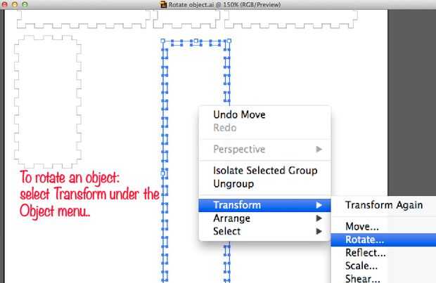 A continuación, mueva cada una de sus partes agrupadas en una configuración ajustada. Para hacer esto, puede que necesite rotar a algunos de ellos. En el menú objeto buscar transformar > rotar... 90 grados.