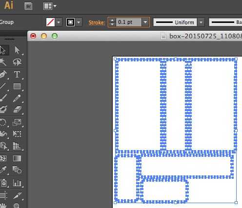 Finalmente, seleccione su archivo completo y echar un vistazo al grosor de trazo en la barra de herramientas. Nuestra máquina de Epilog requiere el peso de línea pt.1 a reconocerla como una línea de vector para el corte. Si se indica, muy bien. Haya terminado con su caja básica! Si no, ajustar el valor en pt.1, fácil peasy. Guarde el archivo como un archivo de Adobe Illustrator (. AI) para este ejemplo.