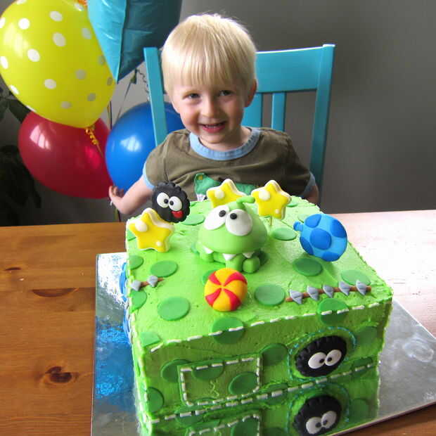 te voy a mostrar cómo hacer el establo, los animales y la hierbaMateriales:-2 tortas de 13 x 9, cualquier sabor-Algo para la base (yo usé la tapa de una caja de zapatos grande cubierta en papel de aluminio)-4 tazas de frosting (2 envases de almacén c