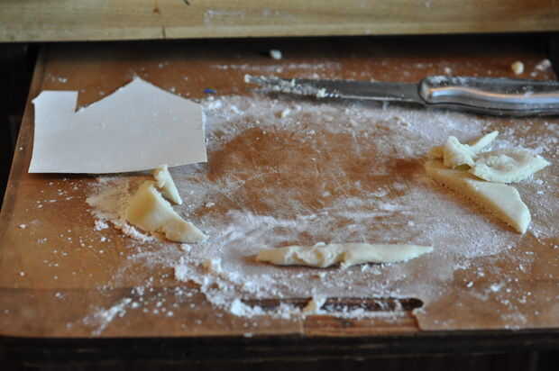 2. Extienda la masa sobre una superficie enharinada para el espesor deseado.