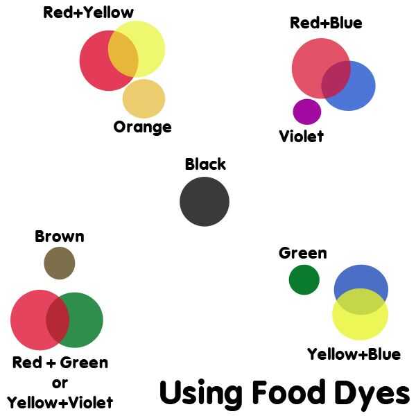 1. dividir el glaseado en envases separados y mezclar lo que colores quieres. Incluí una carta de color aditivo, en caso de no tiene experiencia con mezcla de colores. Mezcla de colores es todo sobre balance. Si quieres un glaseado violeta muy oscuro, usted tendrá más azul que el colorante alimentario rojo en su mezcla. Si quieres un glaseado de naranja muy pálido, desea más amarillo que rojo. Cada color que se mezcla será un tinte, ya que se están agregando a helar blanco así que si quieres verdaderos colores como rojo o azul, te recomiendo conseguir estilo gel colorantes alimentarios, ya que tienden a mantener el color un poco mejor que los tintes líquidos. Generalmente puede encontrar estos en una tienda de artesanía que tiene suministros de decoración de pasteles.