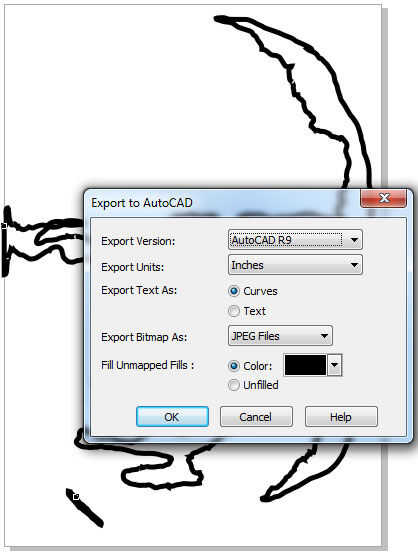 Cuando estés lista exportación seleccione -> DXF y luego en la versión de exportación seleccione caja de diálogo -> autocad r9. Poner este archivo en una unidad; es lo que necesita el equipo cortador de plasma.