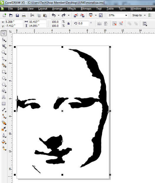 Ahora que vamos a utilizar CorelDraw (también en todos los equipos de Techshop) para convertir la imagen a un vector que se puede recortar.