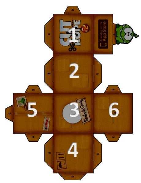 Cuando tienes la salida de impresión en la tarjeta, corte con cuidado alrededor de la parte exterior y las aberturas de las caras 1, 2, 4 y 6. Se puede usar un cuchillo stanley para las ranuras.