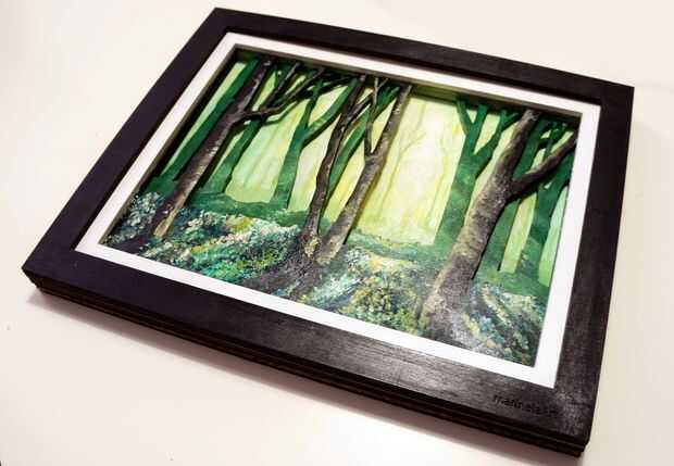 Al pintar yo siempre estoy dibujando en capas. Empiezo con el fondo y luego que sigo añadiendo lo que está más lejos en frente en pasos separados. Este cuadro que lo hice a propósito mediante el uso de 3 capas, así que puedo usar la misma cantidad de láser corta rodajas de madera, y así no termino con final muy gruesa de la paz. El proceso de mí haciendo esta hermosa pintura puede verse en mi primera actualizado YouTube video (ojala uno de muchos más por venir).