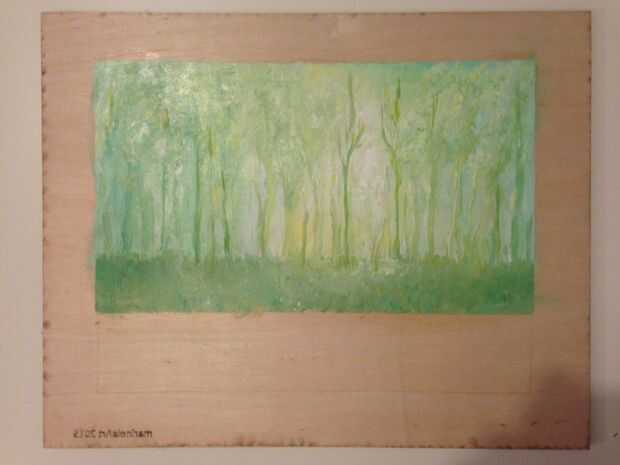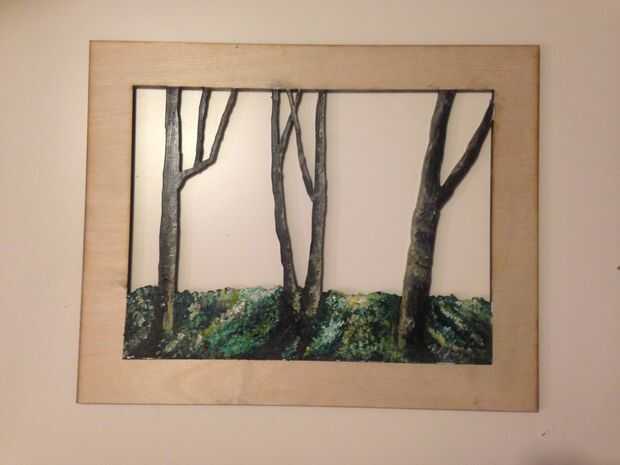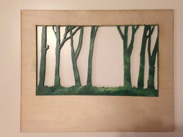 Primero pinté el fondo y luego el árbol 2 en forma de rodajas y, por último, las piezas del 2 marco.