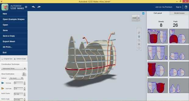 Los estudiantes fueron capaces de manipular el tamaño del modelo y ubicación de las rodajas con las herramientas en el 123D. Con la misma pieza del tamaño de la madera, puede hacer un modelo mucho más grande usando rebanadas enclavijados en comparación con láminas apiladas.