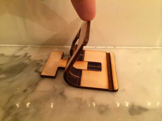 Para usar el soporte, sosténgala con las muescas doblar un lado sobre el otro y doble la T en la ranura.