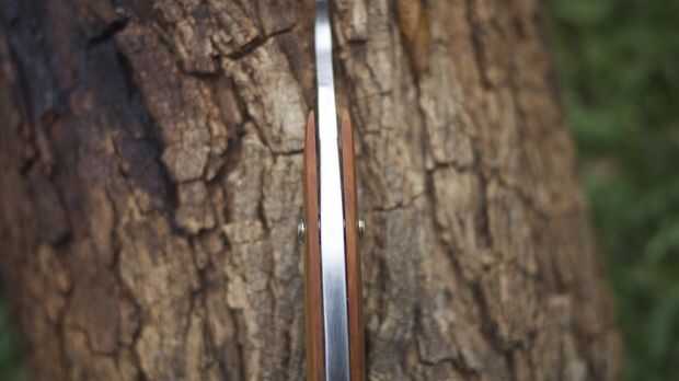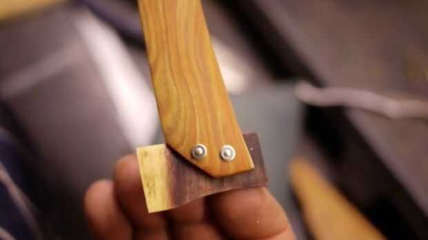 Este proceso es el mismo para el pivote solamente con unas pocas diferencias. Consejos de Stewart es el pivote hasta la cuchilla de la Peña es apretado, luego se detiene y retorcerse la hoja hacia atrás y de cuarto hasta que se mueve libremente. Esto se denomina configuración. Una vez que la hoja se ha establecido, siga granallado hasta que la hoja puede soportar su peso por sí mismo. También utilicé arandelas de bronce ambos lados de la hoja aquí para que el agua secar fuera de la zona de pivote y evitar el desgaste en la madera. También consejos de Stewart. (Ver última foto)