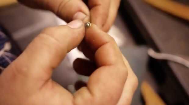 Una vez que sientes que tienen rebabas incluso agradable alrededor del borde del perno de cobre amarillo, la parte superior se ve bien y redondos deslizan las arandelas por (si tienes), luego poner el pin en un lado de la maquinilla de afeitar. He utilizado unas arandelas pequeñas aquí donadas por Stewart. Repartir la carga y mirada agradables.