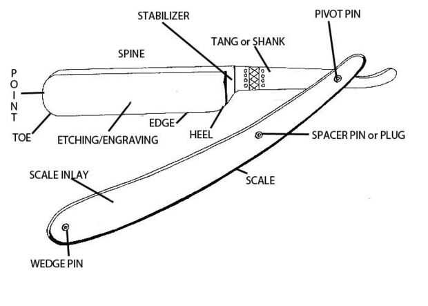 La primera imagen muestra los componentes clave en el cuerpo de la navaja y le ayudará a identificar los nombres cuando sea necesario. (Imágenes de perfiles de la maquinilla de afeitar, maquinilla de afeitar componentes y puntos de afeitar cortesía de theshaveden.com)