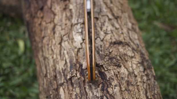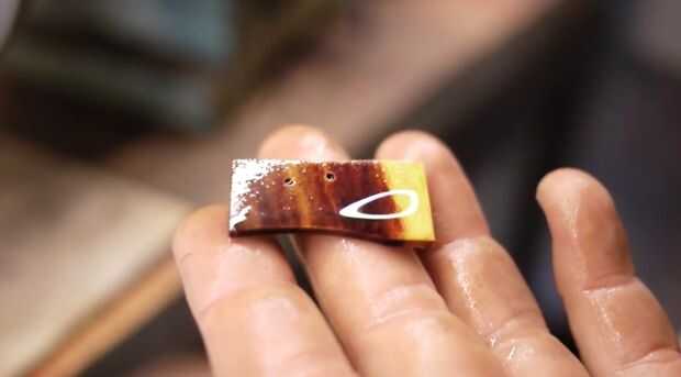 Una vez que las escalas se lija y se terminó entonces puede empezar a hacer tu cuña. Otra vez usé un pedazo de madera del desierto aquí. Esta vez Gidgee rosado, cortar también sostenible de árboles muertos.