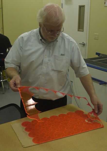 Ahora es el momento para quitar las piezas del material de desecho. En la foto, se puede ver que al menos una de las piezas no era cortar todo el camino a pesar de mis esfuerzos para conseguir la velocidad adecuada. Había un pedacito muy pequeño de acrílico sin cortar, así que fue fácil separar la chatarra de los círculos y estrellas con la mano. Algunos filos de pequeño tuvieron que limpiarse para evitar que a los niños de rayar o cortar ellos mismos.