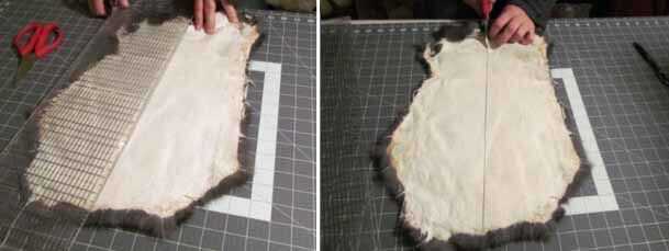 - Utilice la regla para dibujar una línea con un lápiz por la mitad de la piel de conejo (longitudinalmente).