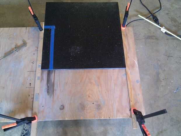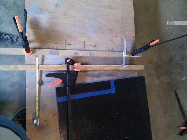 Para las guías, estoy utilizando madera contrachapada bastante gruesa y pedazos de madera---nada extravagante, simplemente se retiró de mi cubo de madera de desecho. Sólo tienen que ser rectas---mira hacia abajo el borde para verificar la rectitud.
