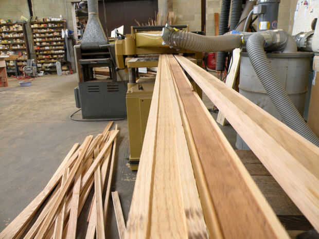 Para quitar los canales enrutados en la parte inferior de los tablones, ejecute a través de una cepilladora. Yous hould ahora tienen un montón de acción limpia, no lenguas, sin ranuras, no canales y sin barniz.